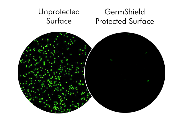 Shown in microscope photos above, GermShield® surface provides the ultimate protection from bacterial contamination.